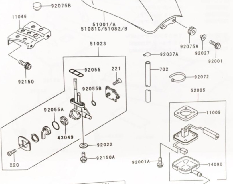 ゼファー750(ZR750C) 車体番号ZR750C-079765まで フューエルゲージ 図中(52005番) 52005-5004 (52005-1101 52005-1147 より品番統一)