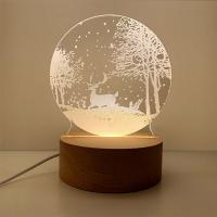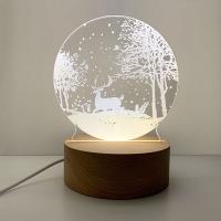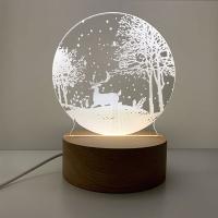 LED ナイトライト 3D アート 調光 調色 卓上 インテリア USB接続 常夜灯 テーブルランプ 木製土台 間接照明 トナカイ 送料無料