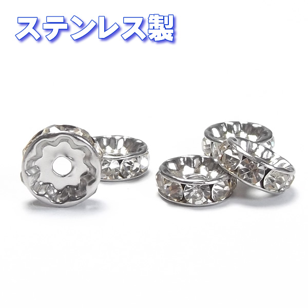 ロンデル ステンレス製 粒売り 平型 シルバー 10mm ラインストーン