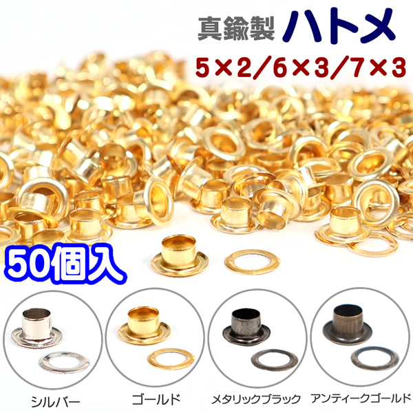ハトメ 50個入 5×2 6×3 7×3 頭 5mm 6mm 7mm 足 2mm 3mm はとめカン パーツ レザークラフト ハンドメイド