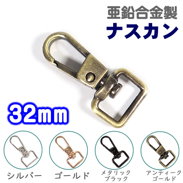 ナスカン 回転カン 押込式 3.2cm 通り幅11mm 角カン フック カン類 留め具 キーホルダー 金具 ハンドメイド パーツ
