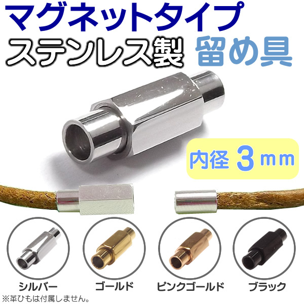 マグネットクラスプ ステンレス製 留め具 六角 内径3mm 革紐/丸紐用 パーツ アクセサリー用 シルバー 留め金具