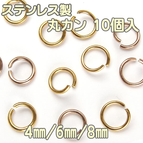 ステンレス製 丸カン 10個入 外径 4mm 6mm 8mm マルカン 丸環 パーツ カン類 ゴールド/ピンクゴールド