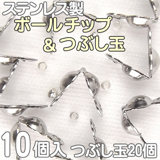 ボールチップ カン付き 10個 つぶし玉 20個セット 玉径 3.2mm/4mm ステンレス製 アクセサリー シルバー