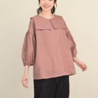 旬コーデの主役になるスクエアカラーのつけ衿とドロップしたボリューム袖がオシャレなブラウスのセット。着心地の良いゆったりとした身幅も魅力。