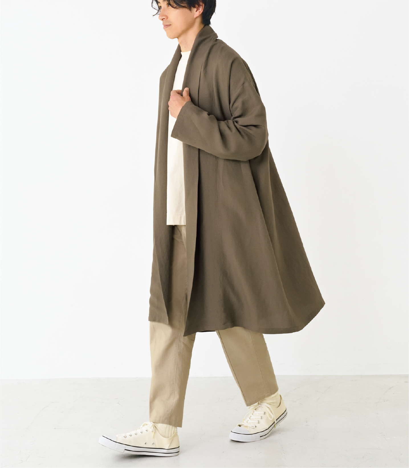 さらっと羽織れてメンズにもおすすめです。しなやかなリネン、レーヨン混紡地は、肌触りが良く季節の変わり目にあると嬉しい1点。