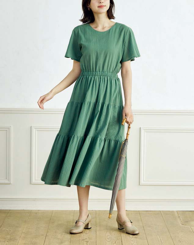 華やかでフェミニンなスタイルを演出する3段ティアードのワンピースが登場しました。