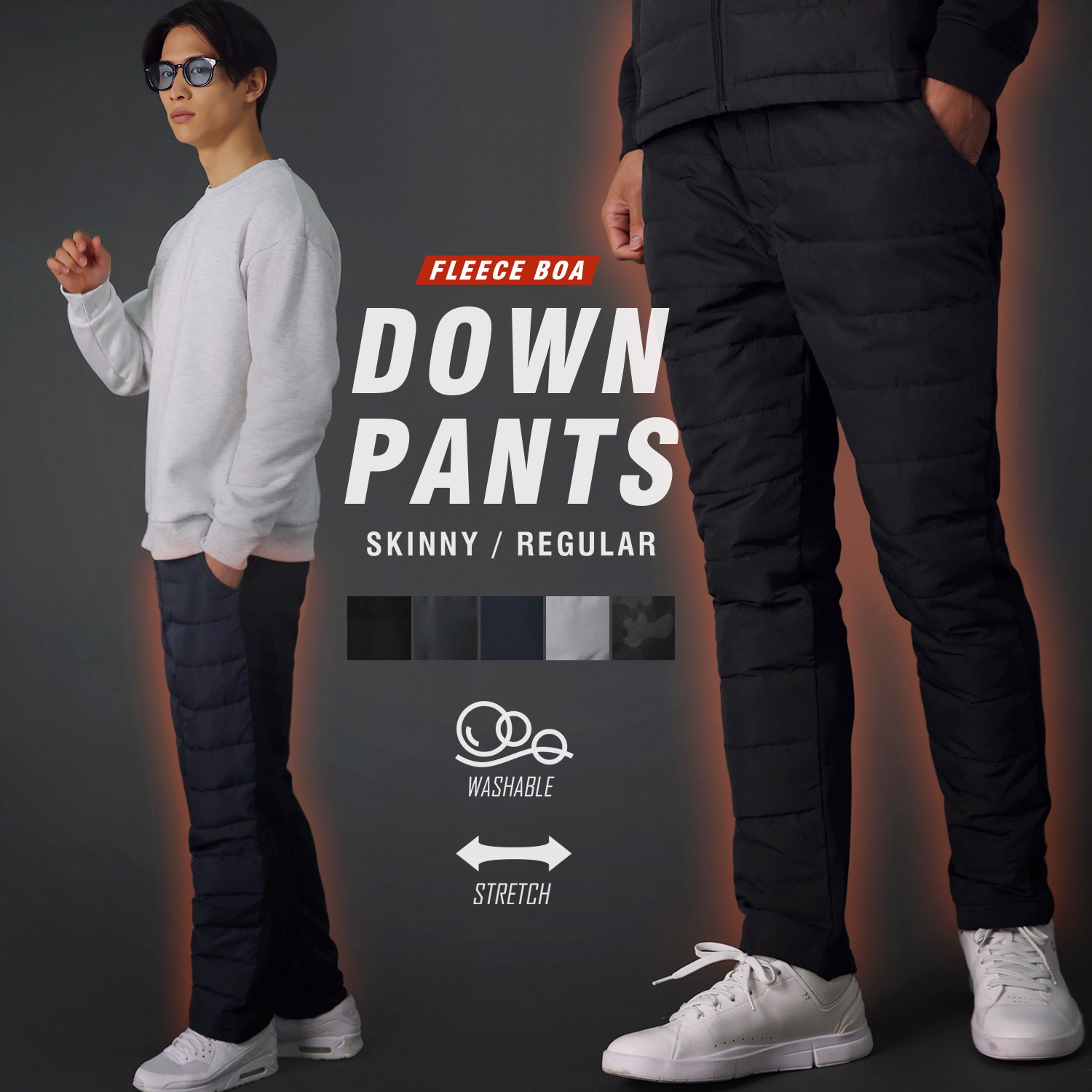 凍えるような寒い季節でも楽しくお出かけできる、あったかパンツです。100%ダウンフェザーの詰め物によって発揮される確かな保温性と、お洒落着として活躍するスタイリッシュな見た目を両立させた一本。好みのフィット感に合わせて選べる2種類のシルエットでご用意いたしました。