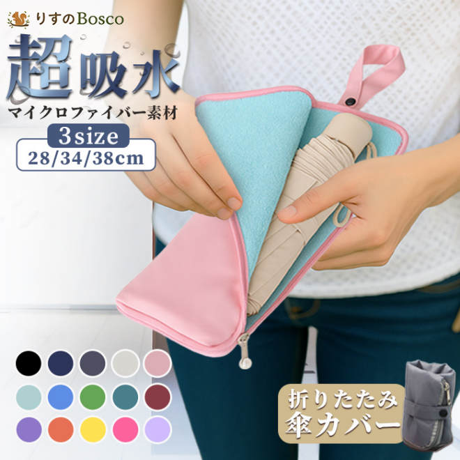 *マイクロファイバー生地が傘の水滴を素早く吸収
