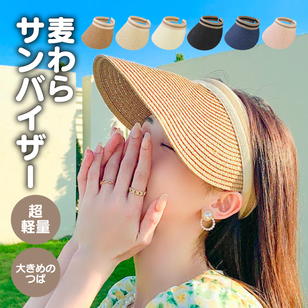 サンバイザー レディース 帽子 麦わら帽子 UVカット つば長 日よけ 紫外線対策 日焼け防止 ハット