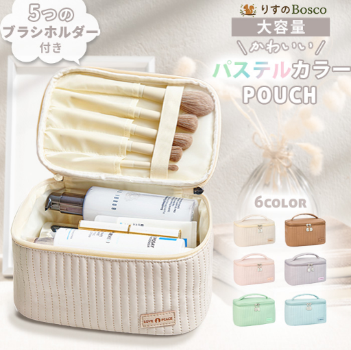 【商品名】コスメポーチ 化粧ポーチ メイクポーチ トラベルポーチ 大容量 バニティ パステルカラー コスメボックス 小物入れ 旅行 マルチポーチ 機能的 レディース ダブルファスナー 持ち手付き 自立 20代 30代 40代