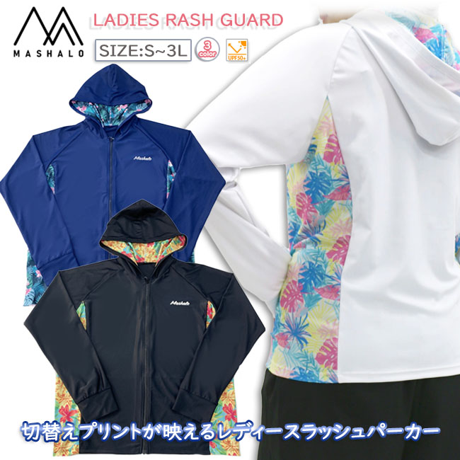 ラッシュガード レディース スイムウエア 水着トップス フード付き マシャロ MASHALO 女性用 長袖 UVカット UV対策 速乾性 海 プール 水遊び MSRG-824