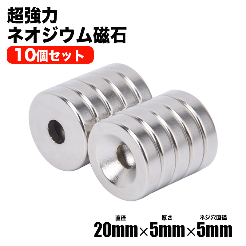 マグネット ネオジム磁石 10個セット 超強力 ネオジウム磁石 20mm×5mm 穴 フック DIY