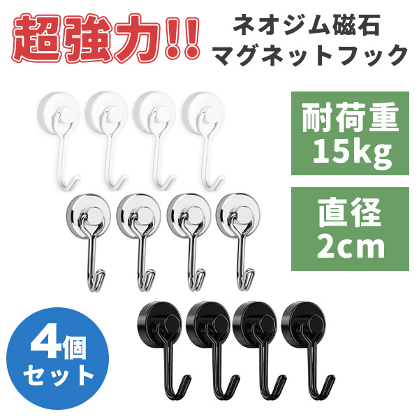 マグネットフック 4個 超強力 ステンレス お風呂 おしゃれ 薄型 360°回転 強力 小型 ブラック ホワイト シルバー 黒 固定 錆びにくい 耐荷重 磁石