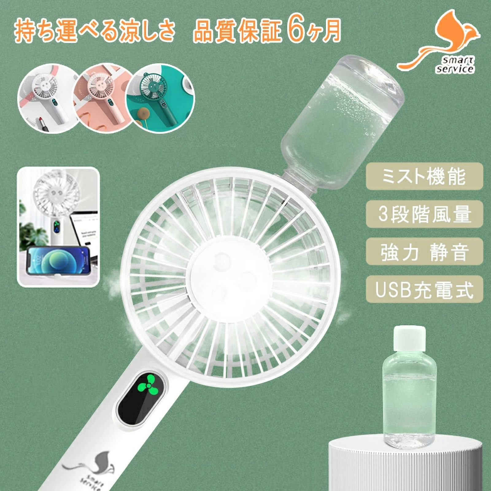 【全品2点10%&3点15%OFF】 手持ち扇風機 可愛い 静音 ミスト機能付き 専用ボルト付き ハンディファン 三色展開 大容量バッテリー ダブルミスト 保湿効果 #1
