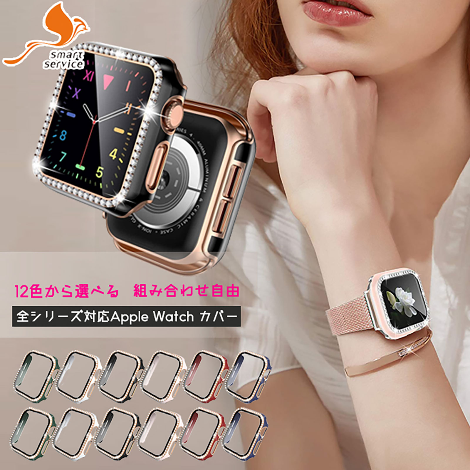 【商品名】アップルウォッチ カバー キラキラ 高級 2点セット 45mm 44mm 42mm 41mm 40mm 38mm ケース 防水 おしゃれ ガラス付