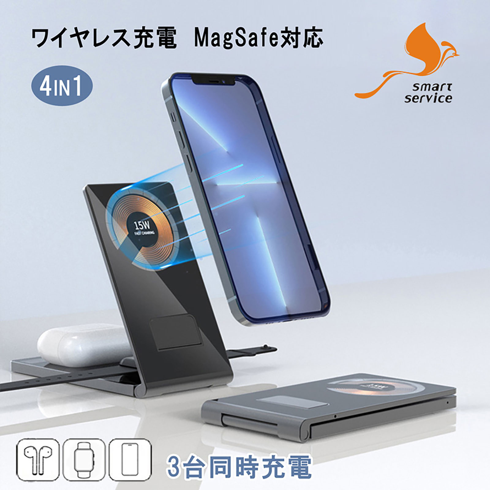 【2点10%OFF】 magsafe充電器 ワイヤレス充電器 iphone アップルウォッチ 持ち運び 4IN1 スタンド 急速充電 2台同時 日本語説明書 レビュー特典付 #1
