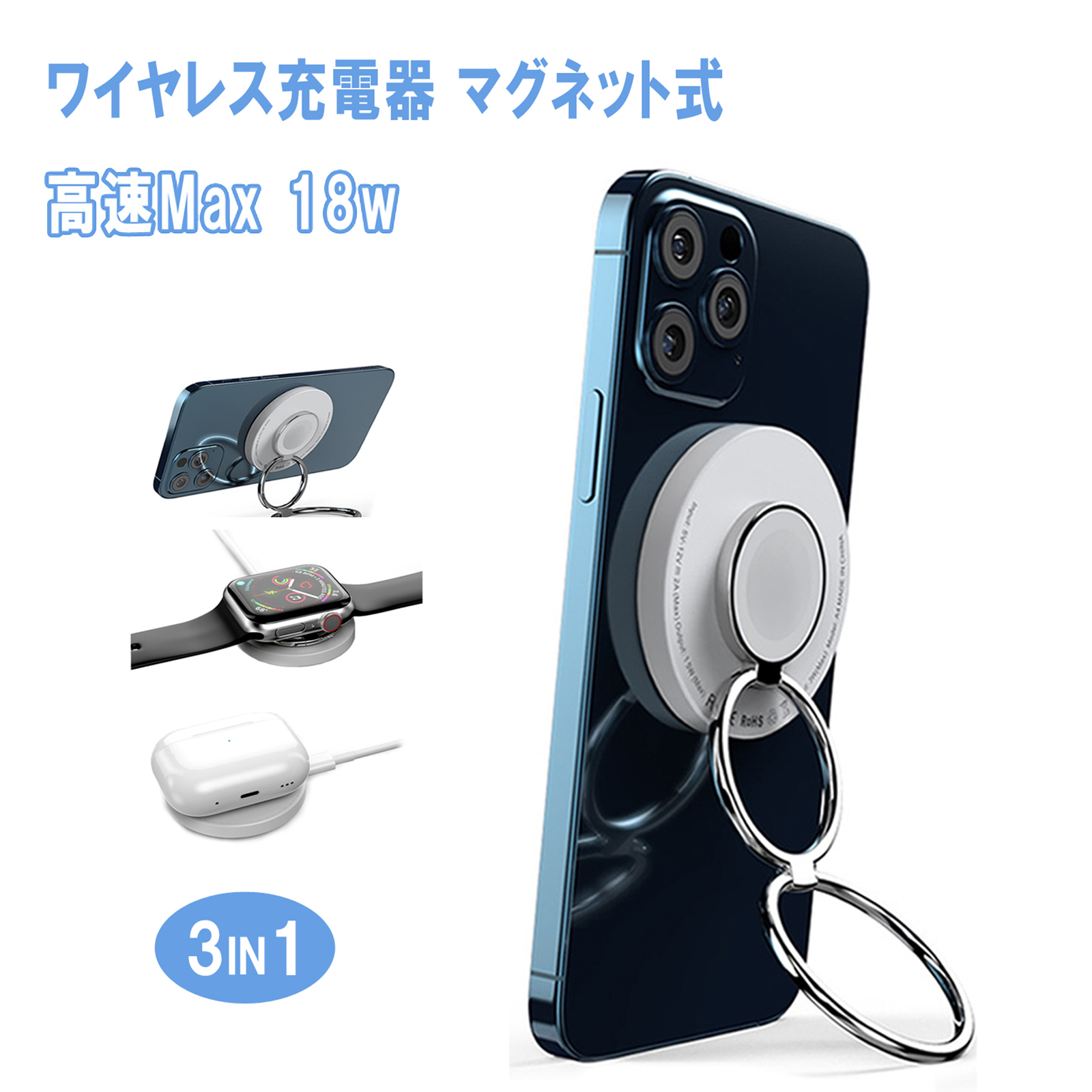 【店内全品|2点10%OFF】 ワイヤレス充電器 3in1 magsafe充電器 apple アップルウォッチ 充電器 iphone スタンド 18W 急速充電 type-cケーブル付き 爆買 #1