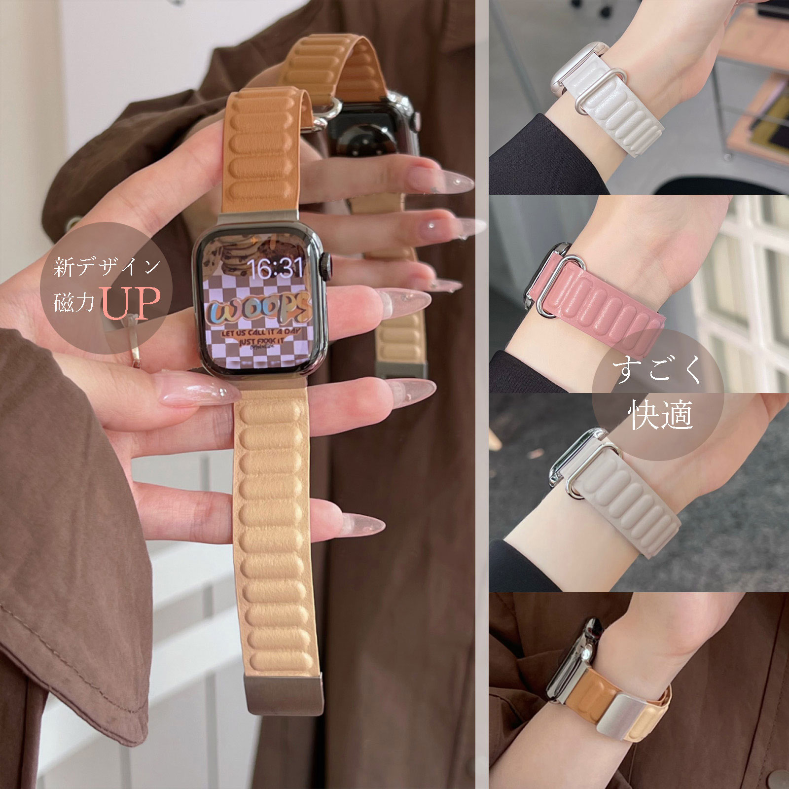 【商品名】2025新型 アップルウォッチ バンド女性 男性 マグネット apple watch バンド レザー アップルウォッチ ベルト おしゃれ ブランド 磁力アップ 爆買