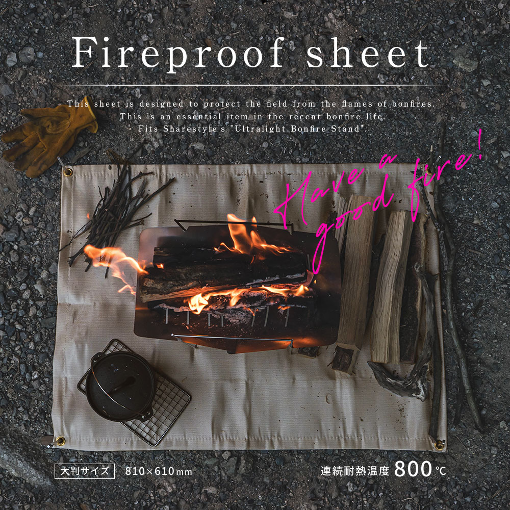 | 焚き火シート 1P 連続耐火温度800℃ 瞬間耐火温度1500℃ ハトメ付き |