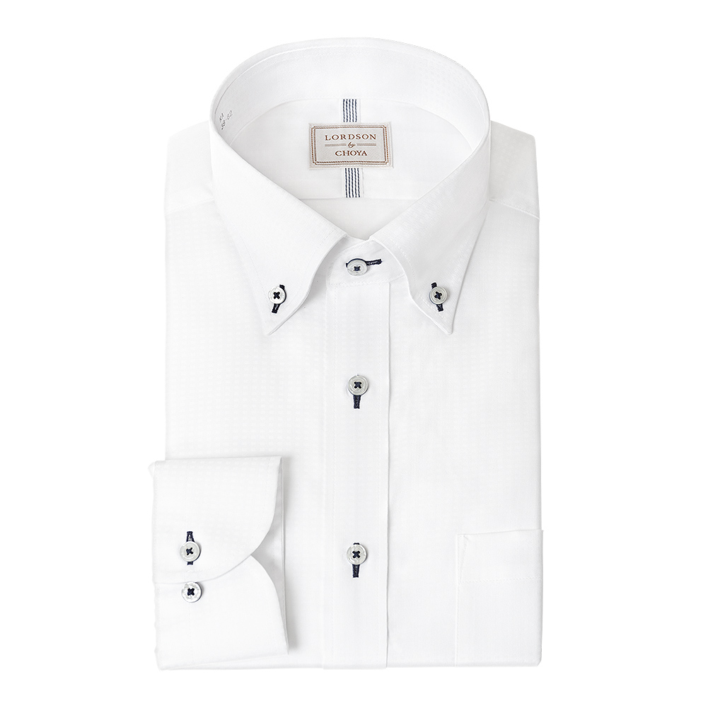【爆買】LORDSON by CHOYA 長袖 ワイシャツ メンズ 形態安定加工 白ドビーチェック ホワイト ボタンダウン