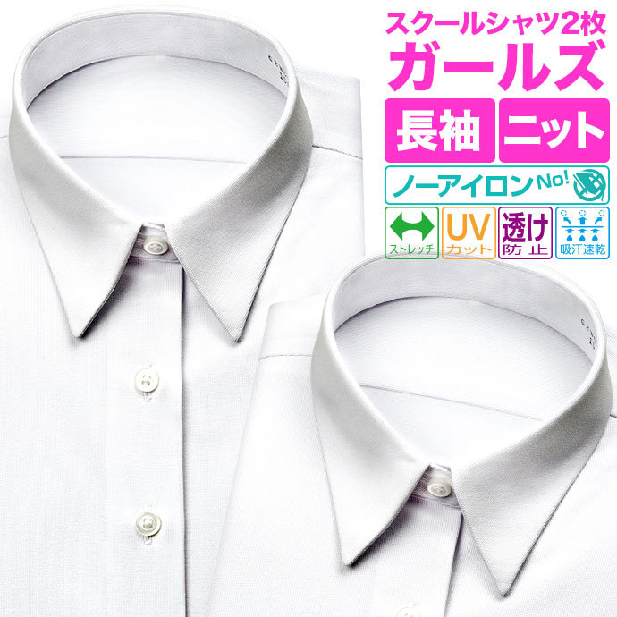 ワイシャツ生産高日本一の山喜株式会社がお届けする、ニット素材の女児長袖スクールシャツです。