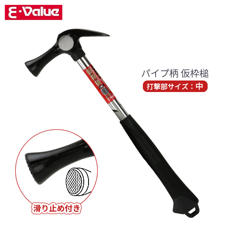 E-Value 仮枠ハンマー 中 パイプ柄 滑り止め付き 止付 仮枠槌 仮枠作業 釘打ち 釘抜 PVCグリップ スチールパイプ ハンマー トンカチ 工具