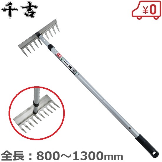 千吉 伸縮式 レーキ 草削り 草刈り ステンレス 1300mm 雑草とり 草むしり 土起こし 除草 ガーデニング 園芸用品 園芸用土 落ち葉 枯葉 庭 掃除 道具 清掃