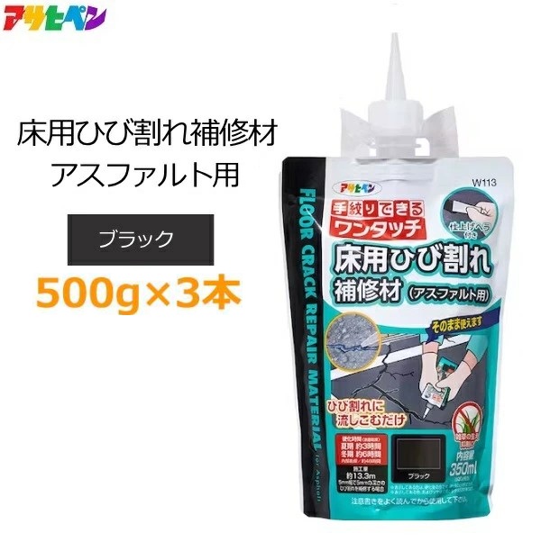 アサヒペン アスファルト用 床用 ひび割れ 補修材 500g×3本 モルタル 修正剤 屋内外 ガレージ 段差 穴補修 駐車場 床工事
