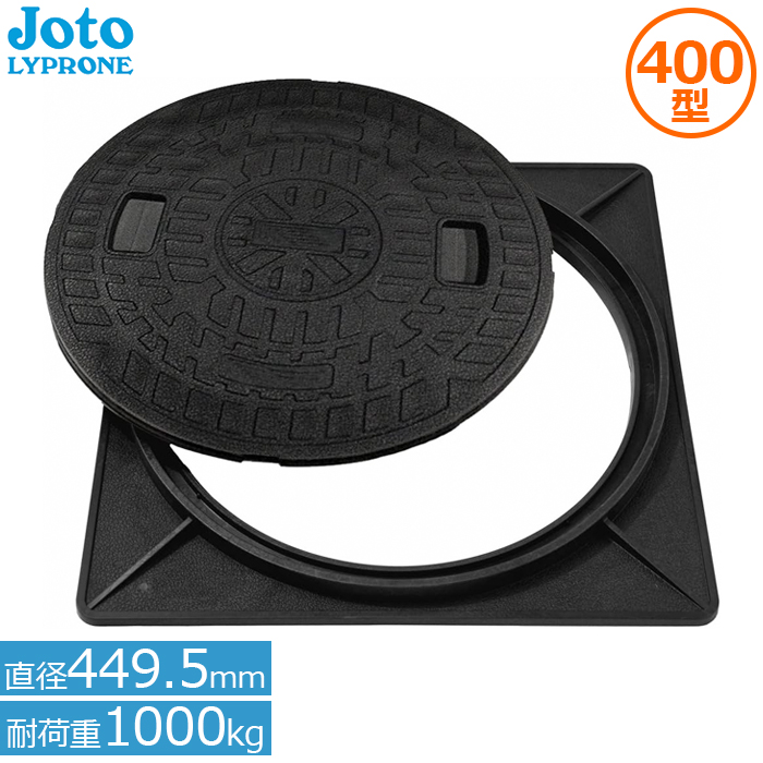城東 マンホール 蓋 400型 角枠付き (直径449.5mm耐荷重1t) 小型合併浄化槽 雨水蓋 排水 枡 セット 樹脂製 黒 ブラック JM-400A