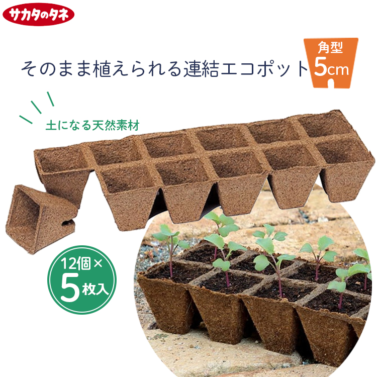 サカタのタネ 種まきポット 角型 5cm 12個連結×5枚入 (60個分) ジフィーストリップ 連結 エコポット 種まき ジフィーポット Seed fun.