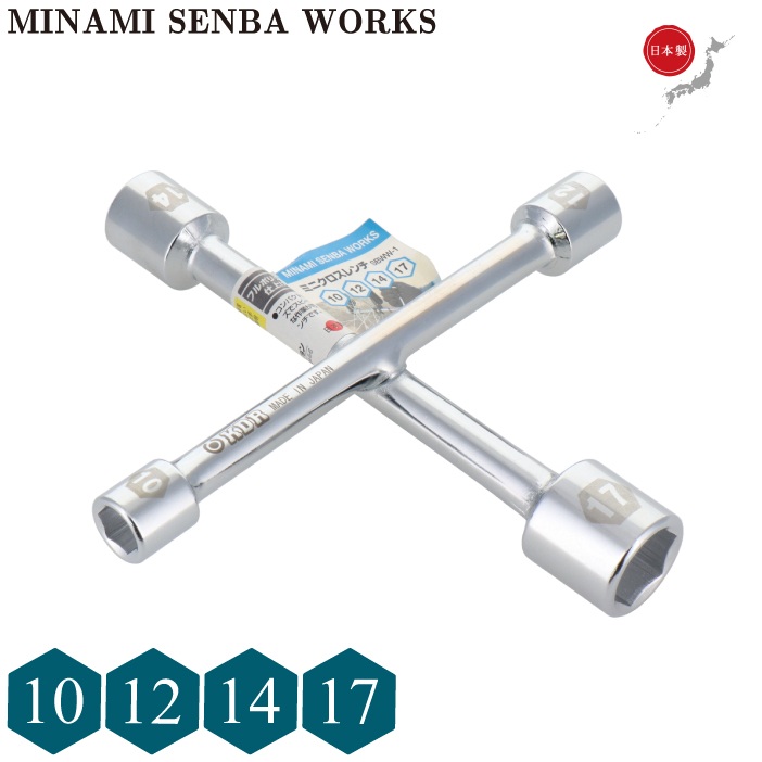 日本製 ミニクロスレンチ 10mm×12mm×14mm×17mm SBWW-1 クロスリムレンチ ボックスレンチ 小型 工具 自転車用 バイク用 整備工具