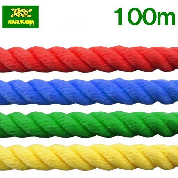 カラーロープ アンカーロープ スパンエステル ロープ Φ8mm×100m 赤 青 緑 黄 三打ち キャンプ 綱引き 生川