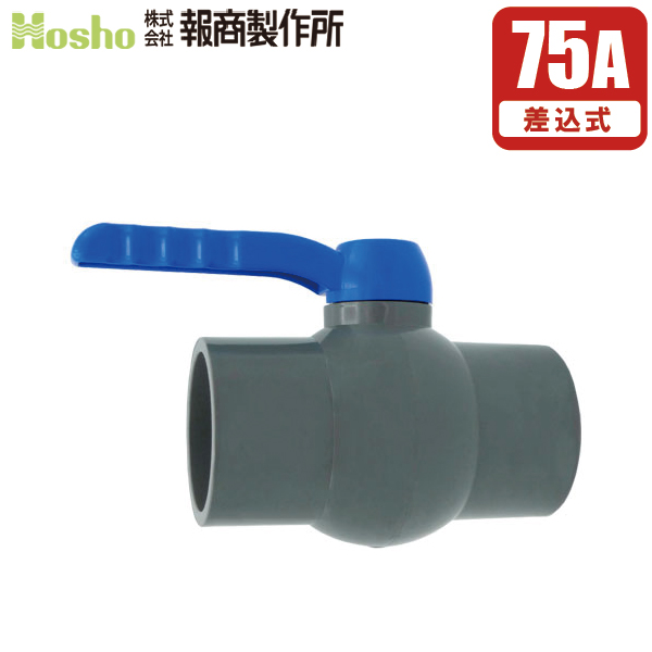 報商 PVC ボールバルブ 75A ソケット式 75mm 樹脂製 ボール弁 グローブバルブ 玉型弁 ボールコック 止水バルブ 止水コック 通水バルブ 通水コック 塩ビ管