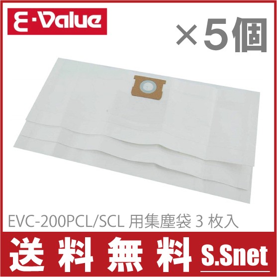 藤原産業 E-Value 乾湿両用掃除機 EVC-200SCL/EVC-200PCL用 集塵袋(3枚入) 5個セット 交換用 紙パック