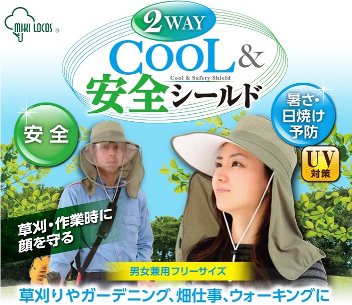 ・シールドが取りはずしでき[強力マジックテープ]、農作業時の帽子としても使用できます。