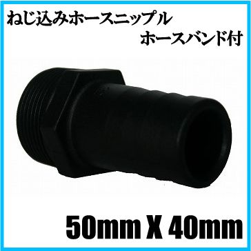 ホースニップル 異径 タケノコ 50mm×40mm ホースバンド付き 竹の子 ポンプ用タケノコ ねじ込み 水中ポンプ ホースジョイント