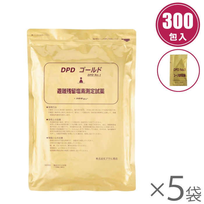 アサヒ商会 残留塩素試薬 DPDゴールド 300包入×5袋 残留塩素 試薬 ユーリ塩素試薬 遊離残留塩素測定用試薬 DPD No1 1500包
