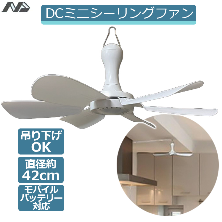 日本電興 DC シーリングファン 小型 軽量 天井 約42cm USB-TypeA 扇風機 ファン 吊り下げ 空気 循環 換気 アウトドア 簡易 おしゃれ ND-CFM42DC