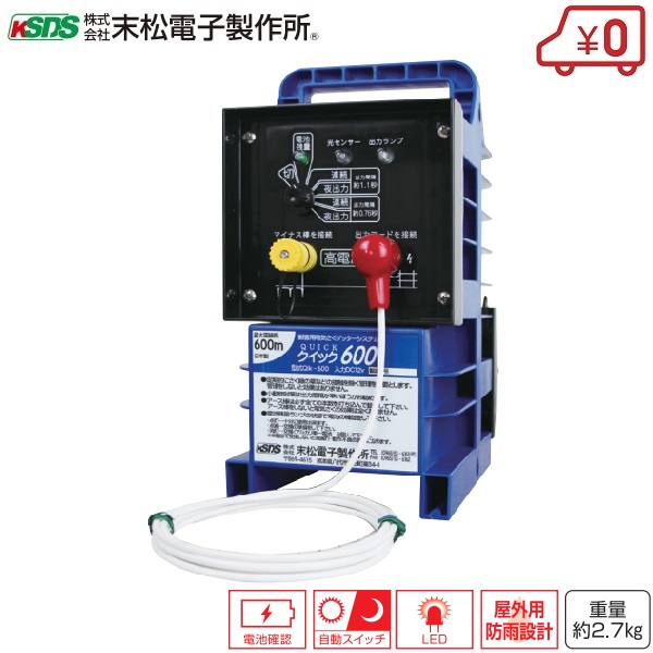 電気柵 クイック600 本体 電池式 電気牧柵器 電柵 電牧器 イノシシ 防獣用品 防獣 害獣 畑 水田 田んぼ 果樹園 末松電子製作所 日本製