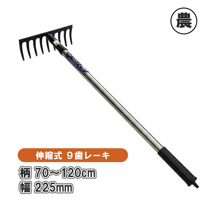 熊手 レーキ 9歯レーキ 土ならし 草刈り 草取り 全長70〜120cm 伸縮式 ガーデンレーキ 草取りレーキ 雑草取り 雑草抜き 道具 立ったまま 園芸用品 軽量 HCNJ055