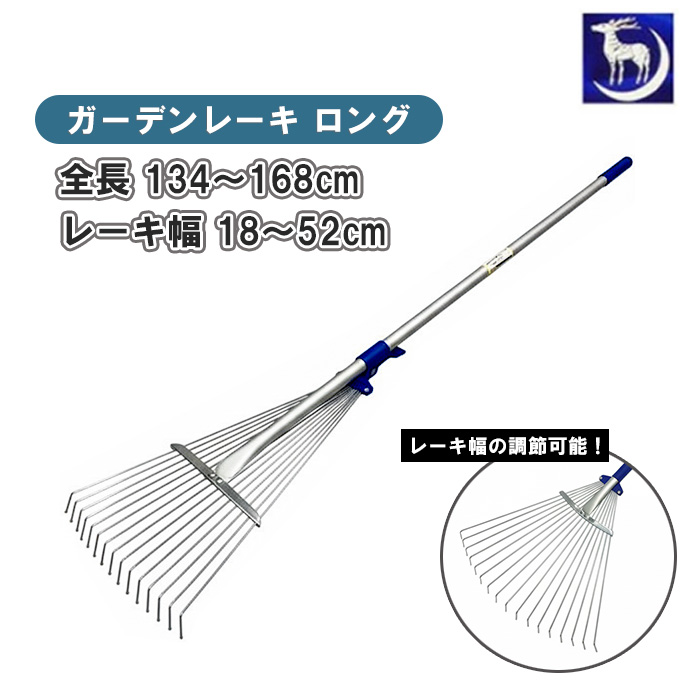 月鹿 熊手 ロング 草刈り 集草 134〜168cm レーキ 長柄ほうき ガーデンレーキ ガーデンクリーナー 草取りレーキ 草刈り道具 落ち葉 集める 道具 落ち葉集め