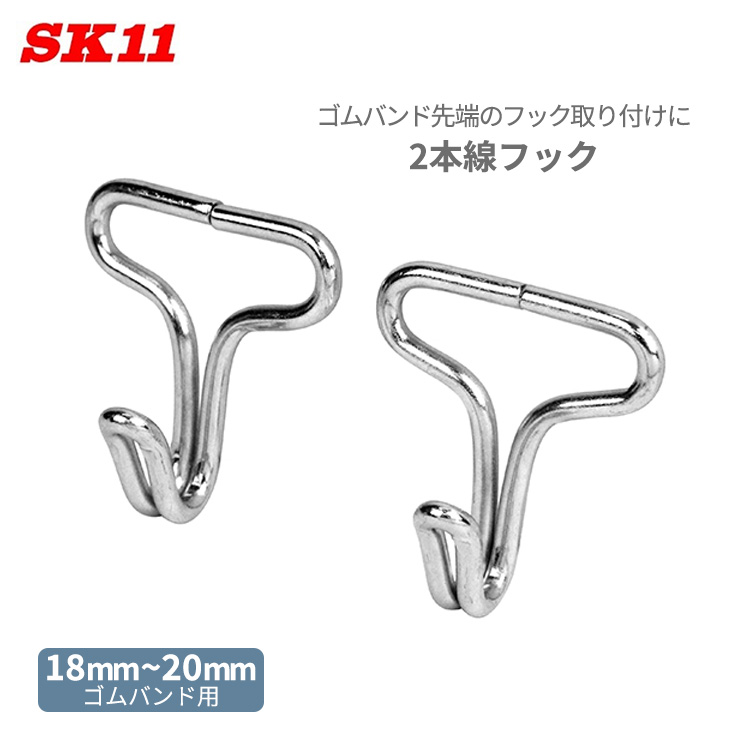 SK11 ゴムバンド用 2本線フック SKG-02K 18mm〜20mm用 固定 フック ゴムバンド用金具 軽トラ トラック用品