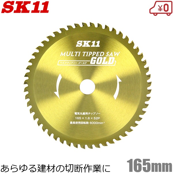 SK11 丸ノコ 替刃 チップソー 建材用 外径165mm 刃厚1.6mm 内径20mm 刃数52P 交換刃 砥石