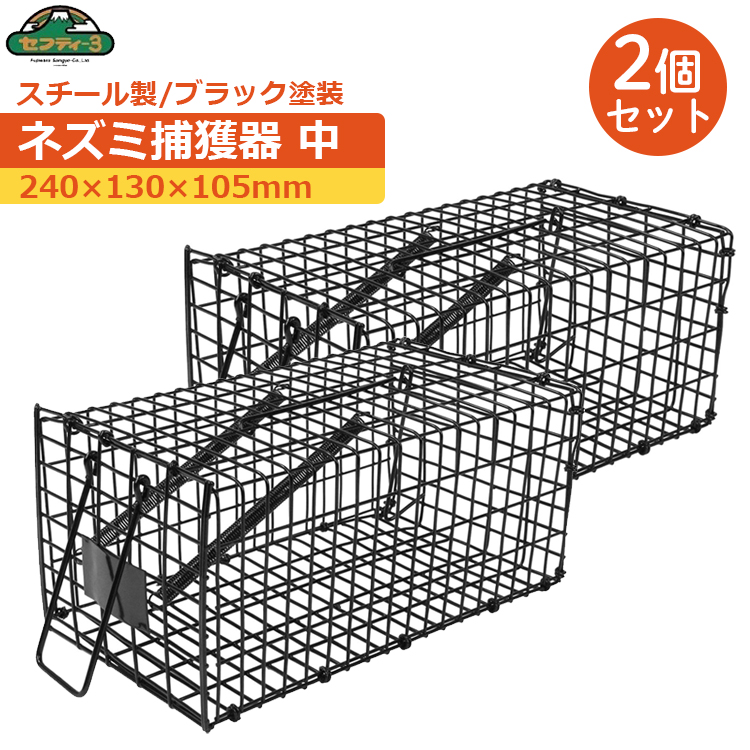 セフティ3 ネズミ捕獲器 2個セット ネズミ捕り器 中 240×130×105mm 害獣 捕獲器 鼠 ネズミ取り ねずみ 駆除 カゴ 捕獣器