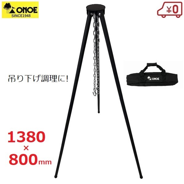 トライポッド 三脚 スタンド 焚火 ブラック 高さ138×幅80cm 組み立て式 HT-141-B 尾上製作所