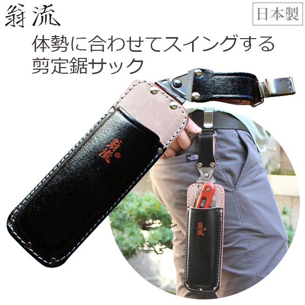 剪定鋸サック 黒革 カン付き 日本製 首を傾げる 剪定ノコ ケース 折込鋸 プロ おしゃれ OWL #1132