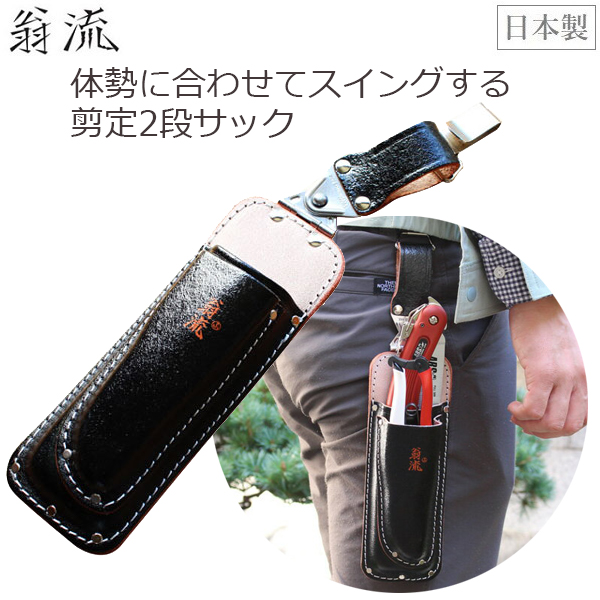 2段剪定サック 黒革 カン付き 日本製 首を傾げる 剪定鋏 剪定鋸 ケース 折込鋸 プロ おしゃれ OWL #1133