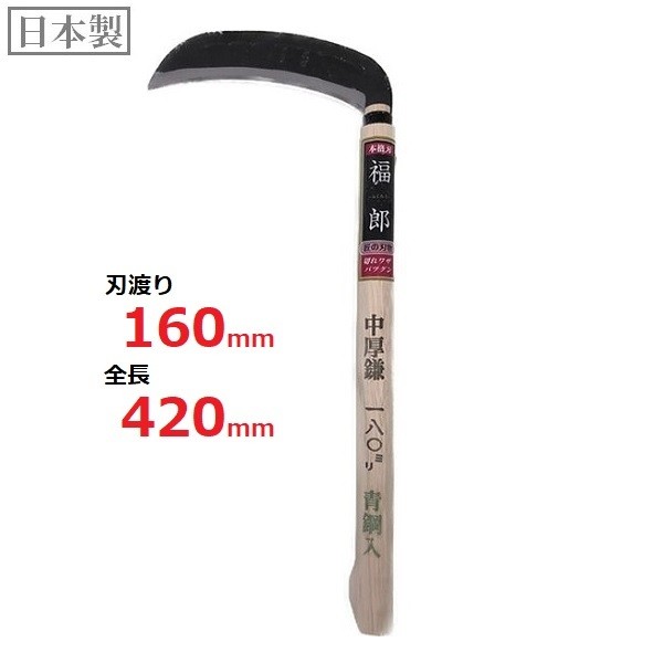 鎌 両刃 中厚 青銅入 刃渡り160mm 全長420mm 草刈り 刈払い 日本製 福郎 #427