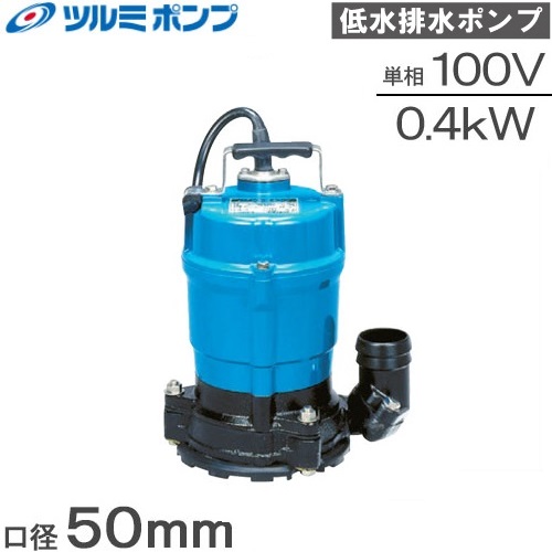 ツルミ 水中ポンプ 小型 100V 低水用 排水ポンプ 業務用 HSR2.4S 0.4kw 50mm 2インチ 強力 底水 底吸い 床下排水 底まで吸える 汚水ポンプ